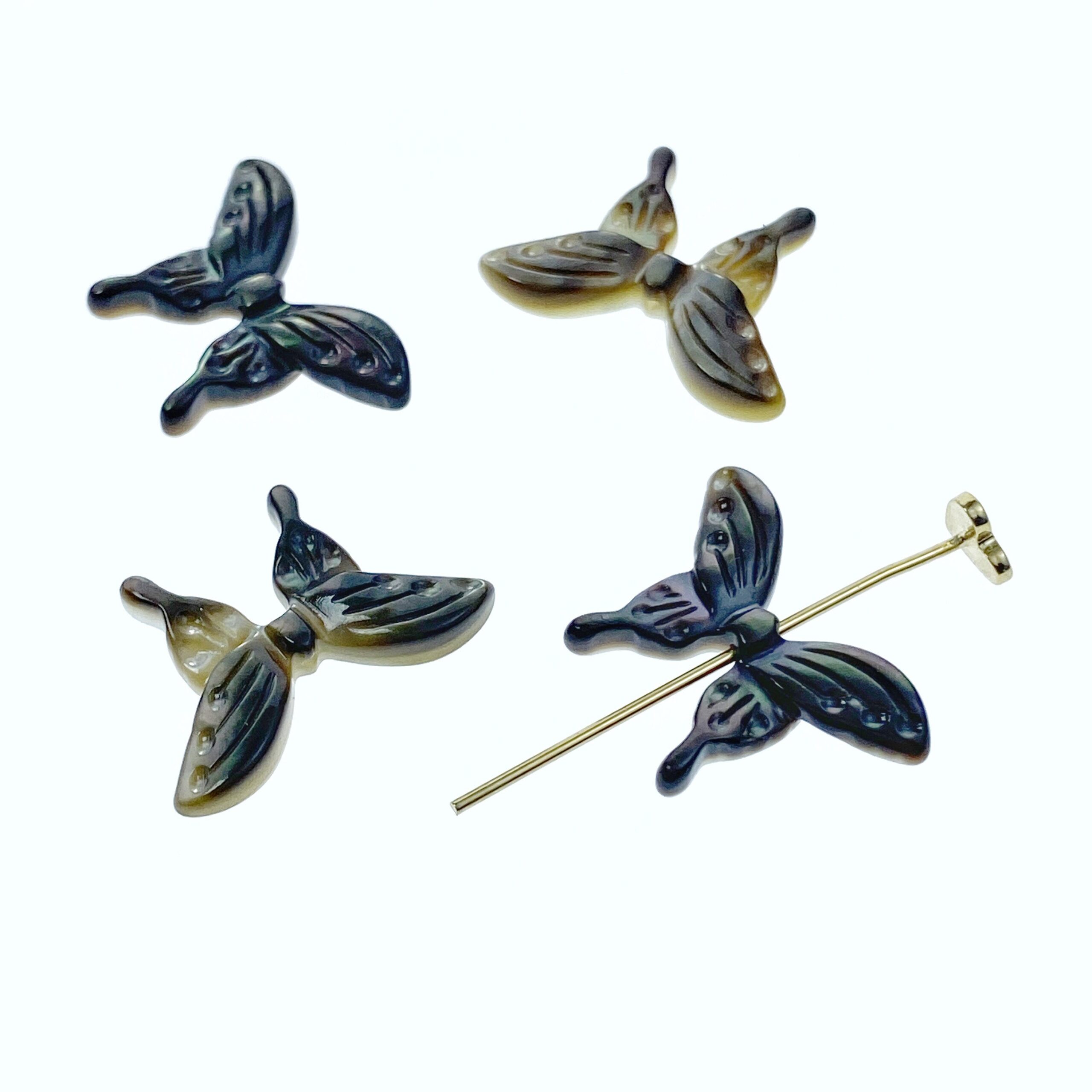 4pc 20mm Butterfly Black Mother Of Pearl Shell Bead Charms Pendants For DIY Jewelry Minimalist Design Earrings Natural & Organic BM-0089