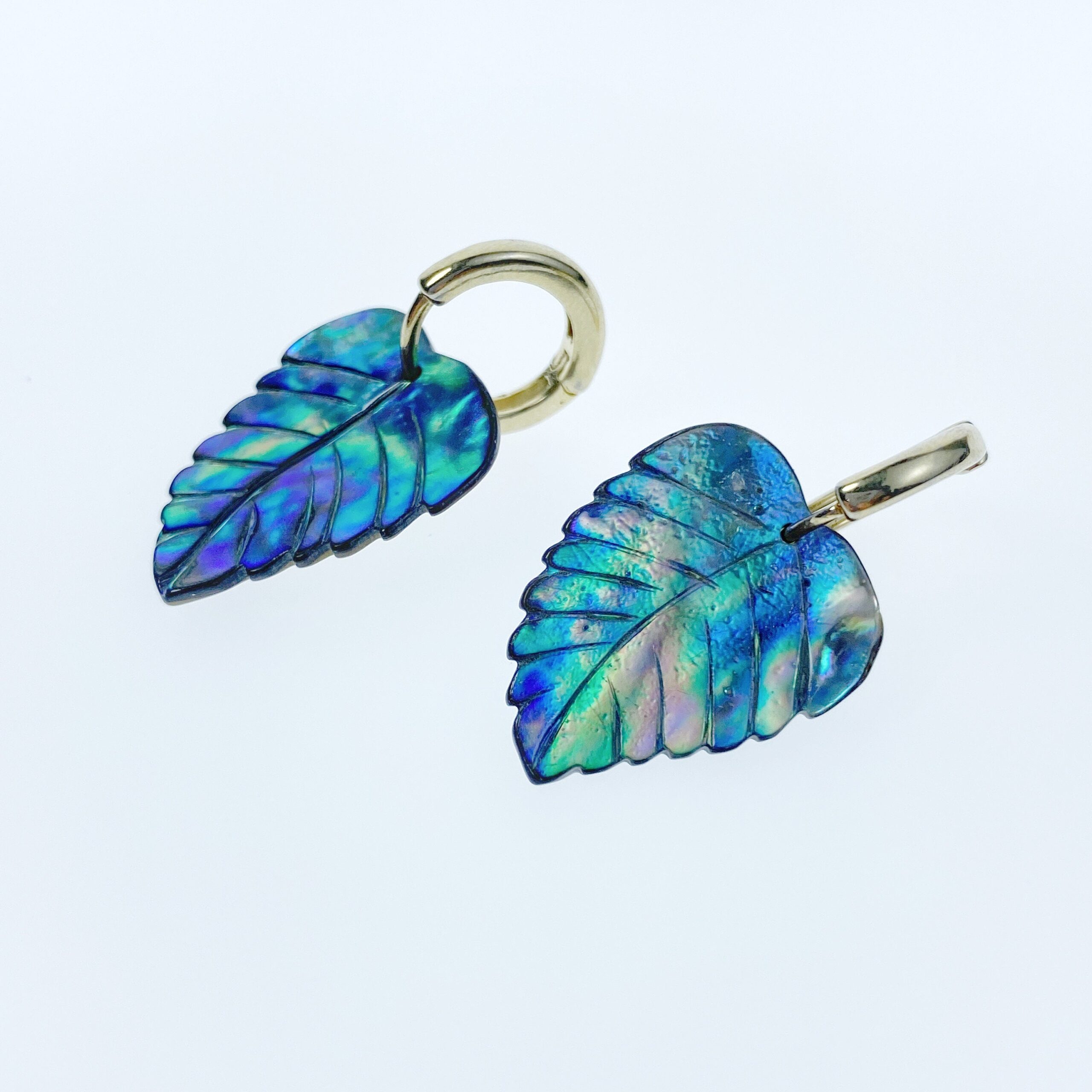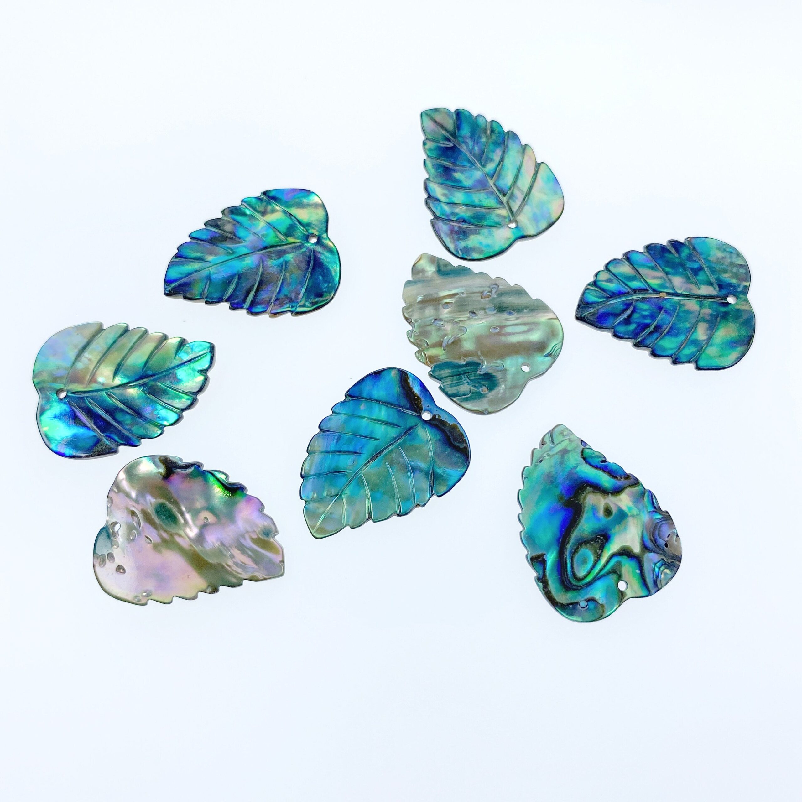4pc 23mm x 18mm Natural Abalone Shell Hand Carved Leaf Pendants AB-0020