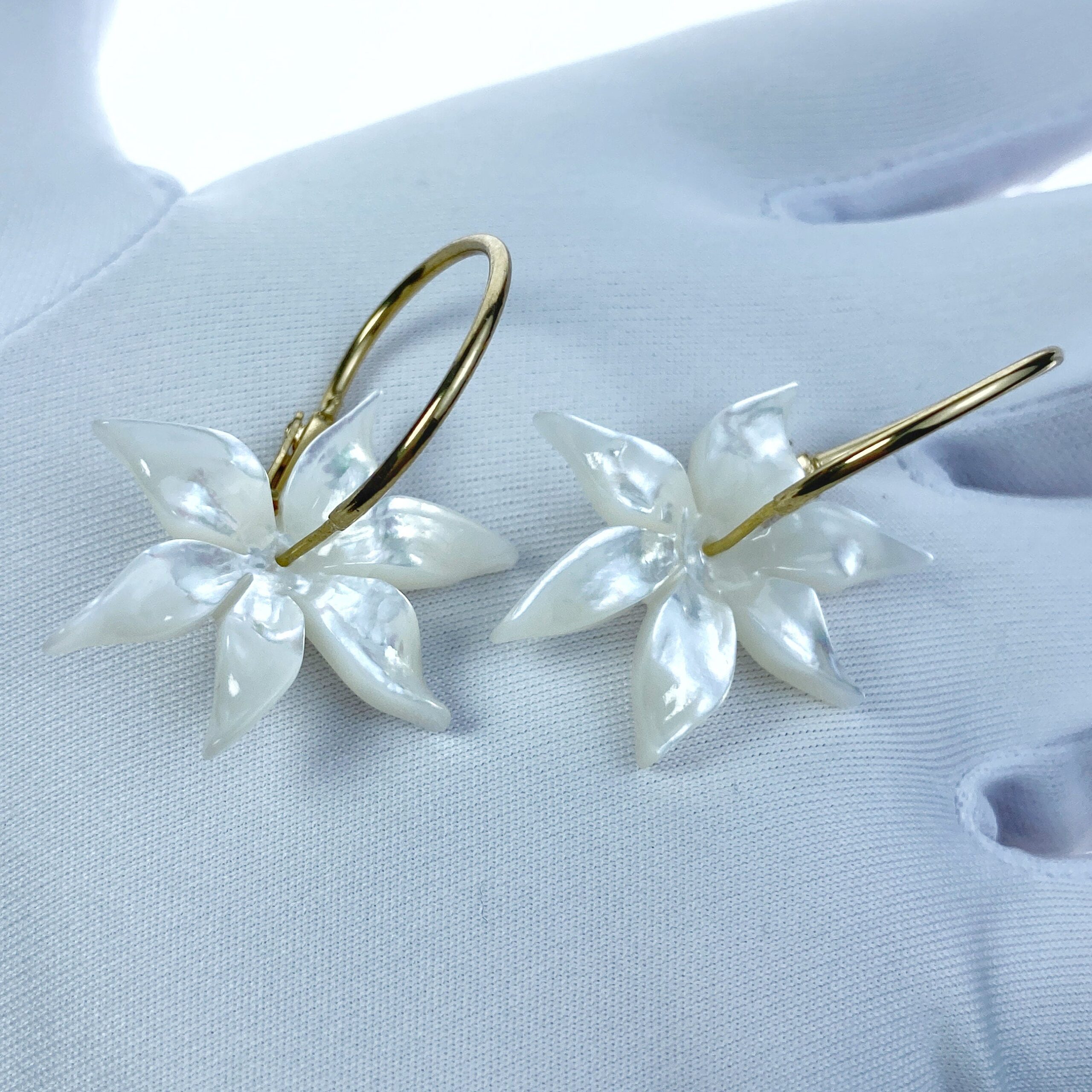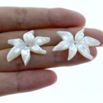 4pc 6 Petal Flower Mother Of Pearl Beads Charms Bridal Earring Jewelry Making 28mm Tropical Hawaii Minimalist Design Hand Carved New WM-0043