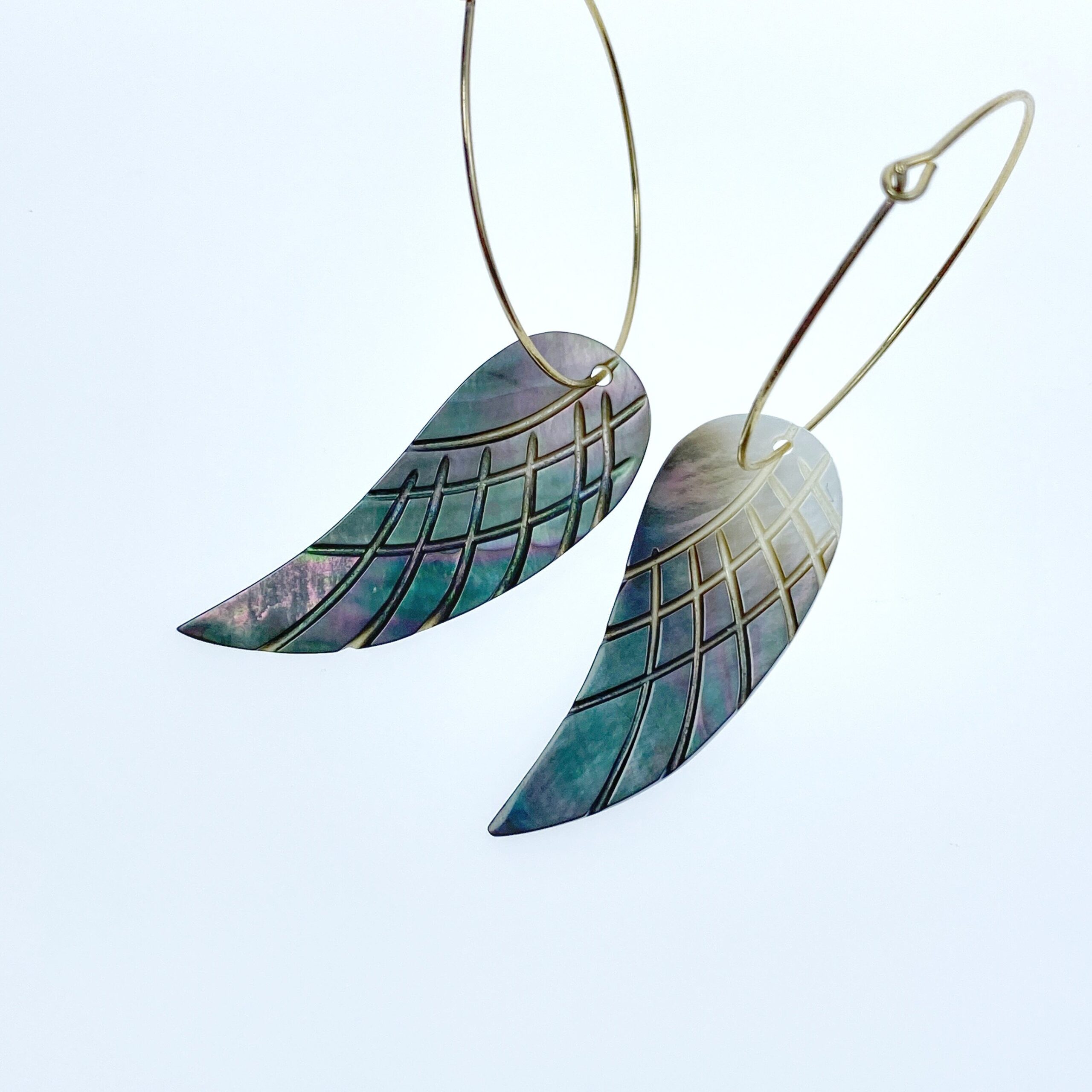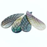 4pc Angel Wings Beads Black Mother Of Pearl 43mm Charms Pendants Jewelry Earring Making Sea Shell Natural Organic Nature Hand Carved BM-0029