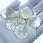 Beautiful white mother of pearl beads are hand carved using fully organic raw materials. All natural product, all pieces are as singular and unique as you.