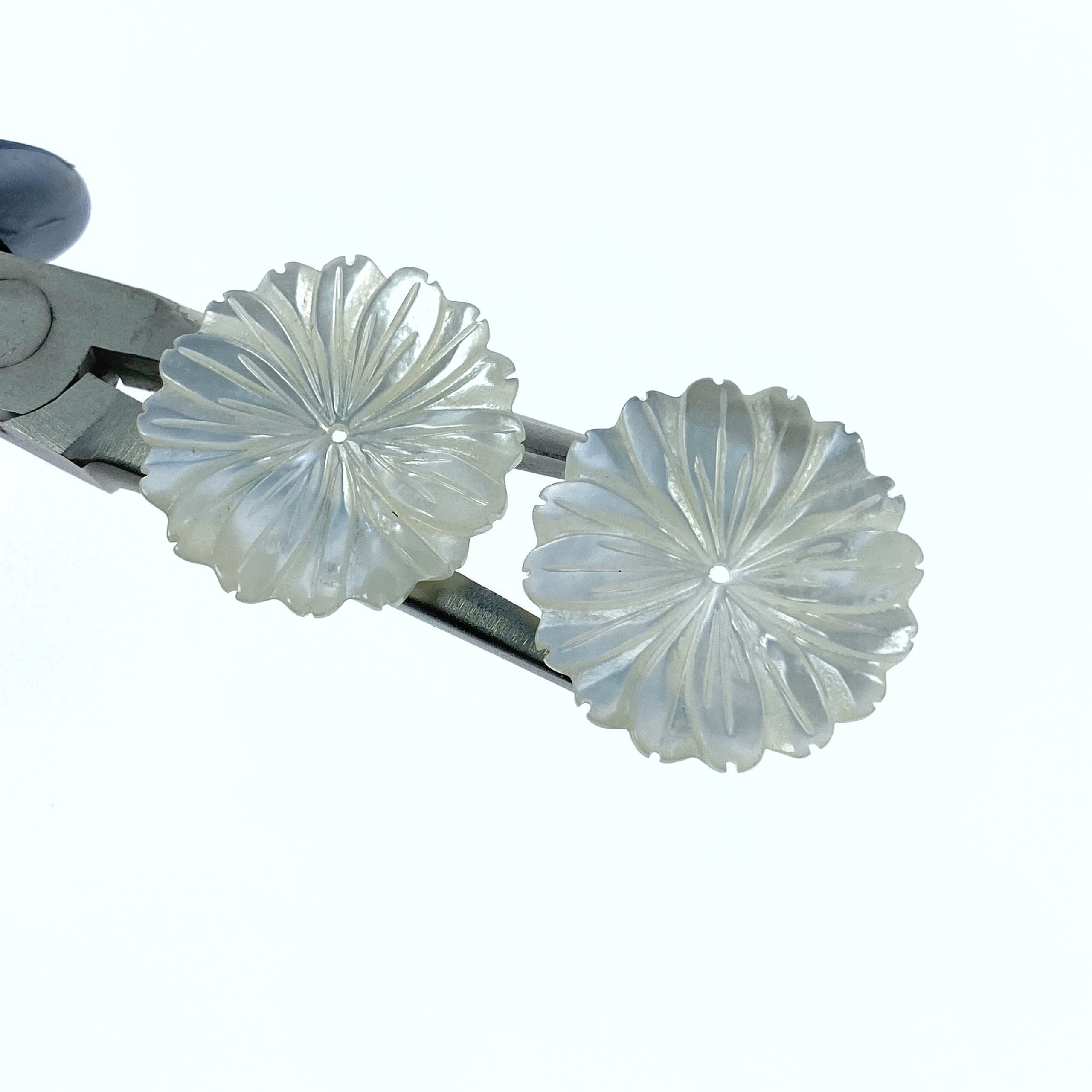 4pc White Daisy Flower Mother Of Pearl Beads 30mm Charms Pendants Bridal Jewelry Earrings Making Bridesmaids Hand Carved Real Pearl WM-0221