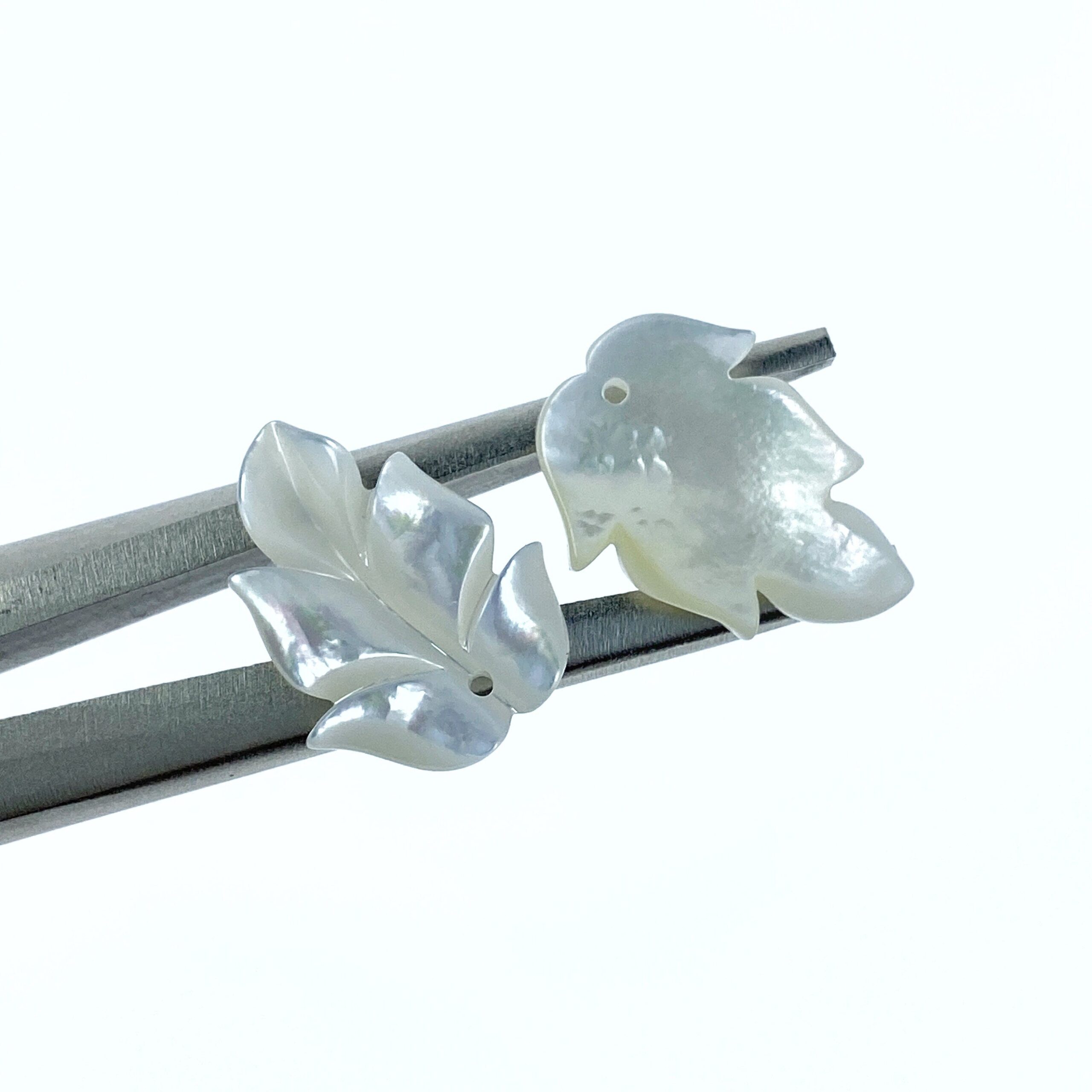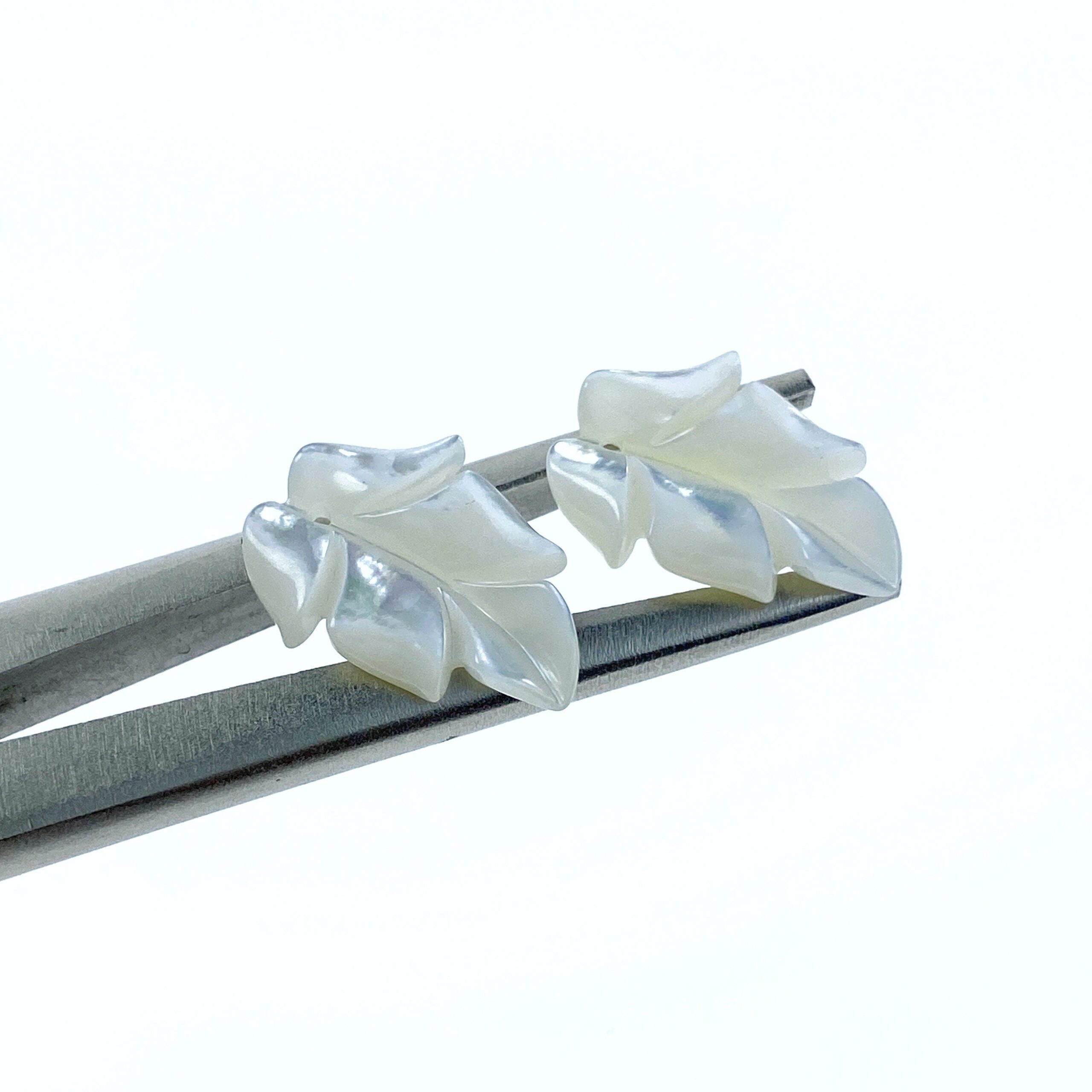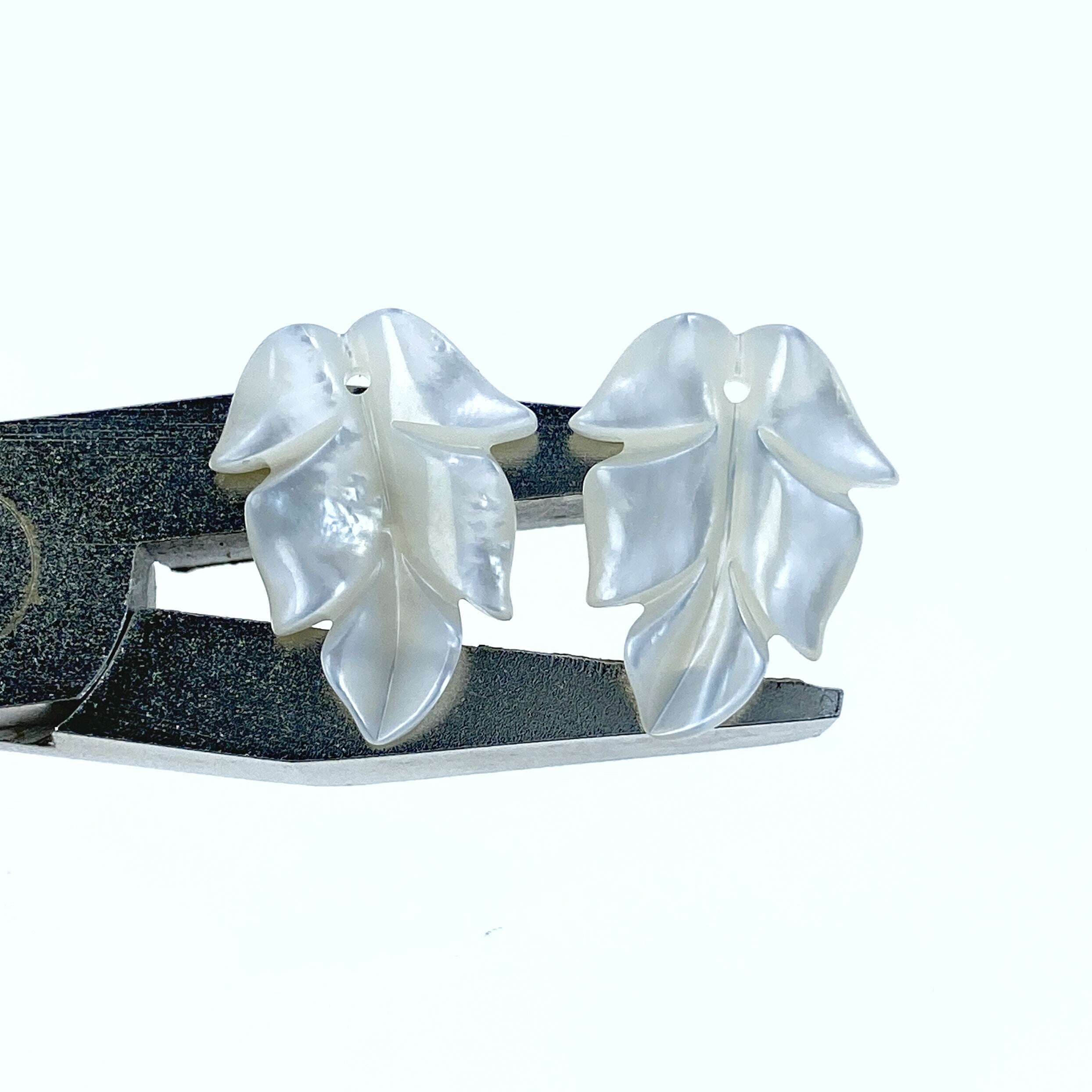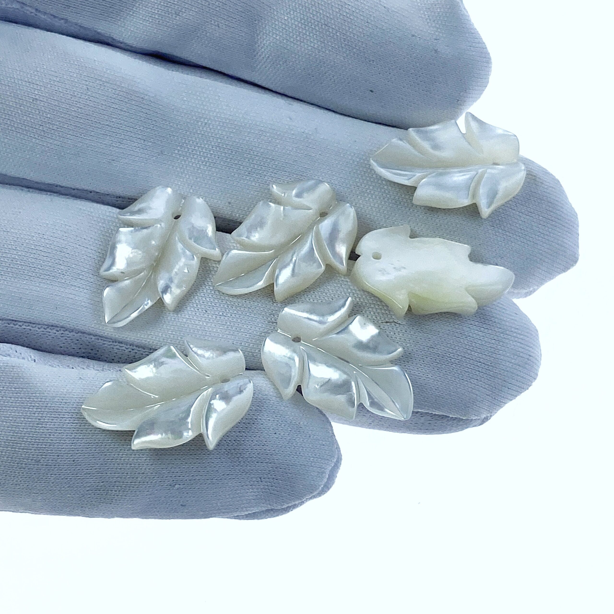 6pc 13mm x 17mm White Mother of Pearl Hand Carved Leaf Pendants WM-0218
