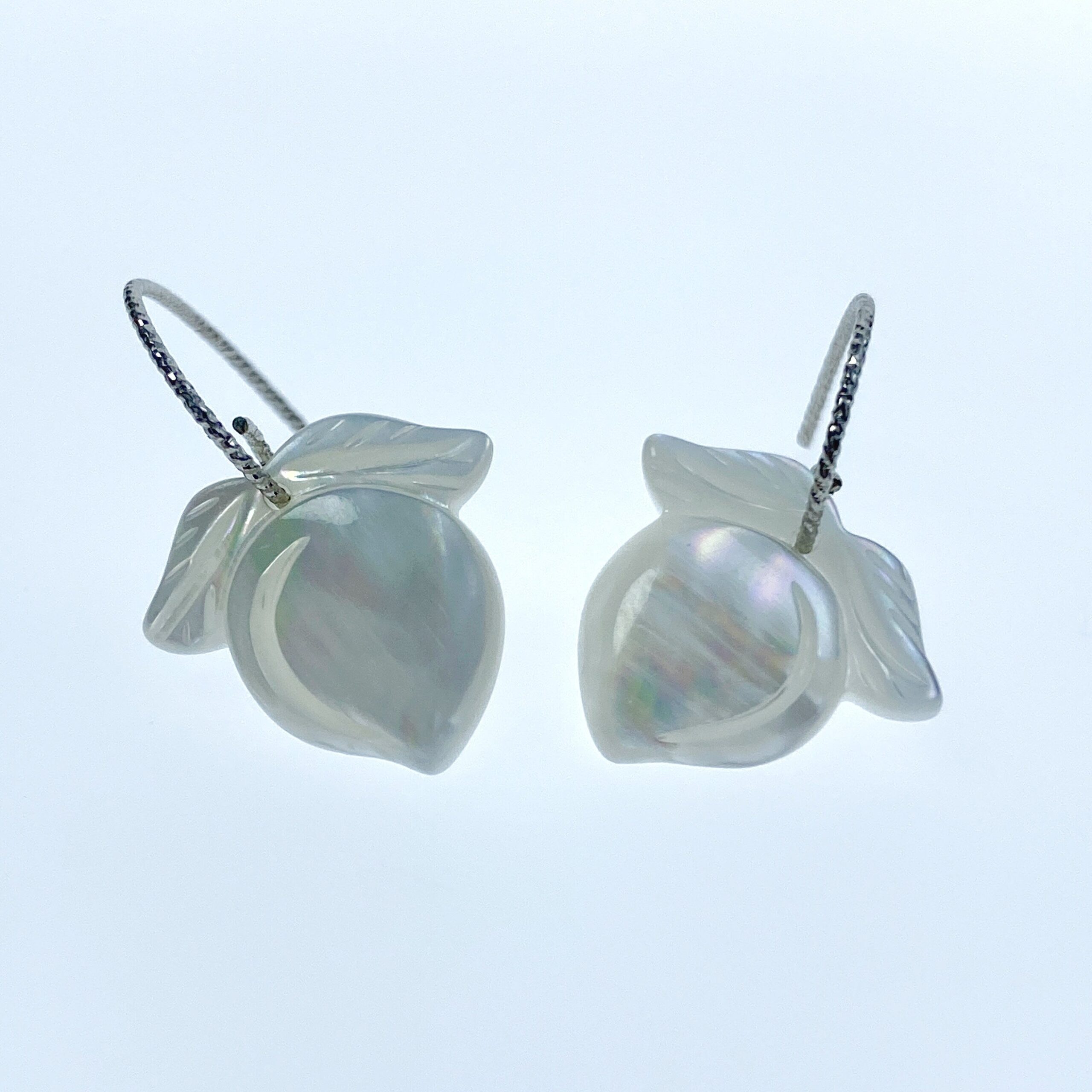 6pc 16mm x 18mm Hand Carved White Mother of Pearl Peach Pendants WM-0193