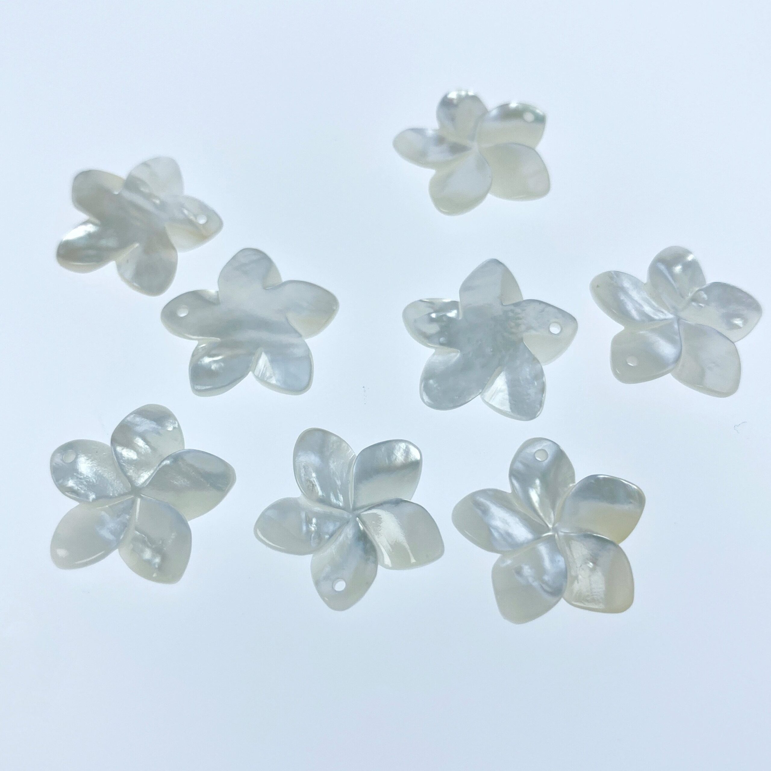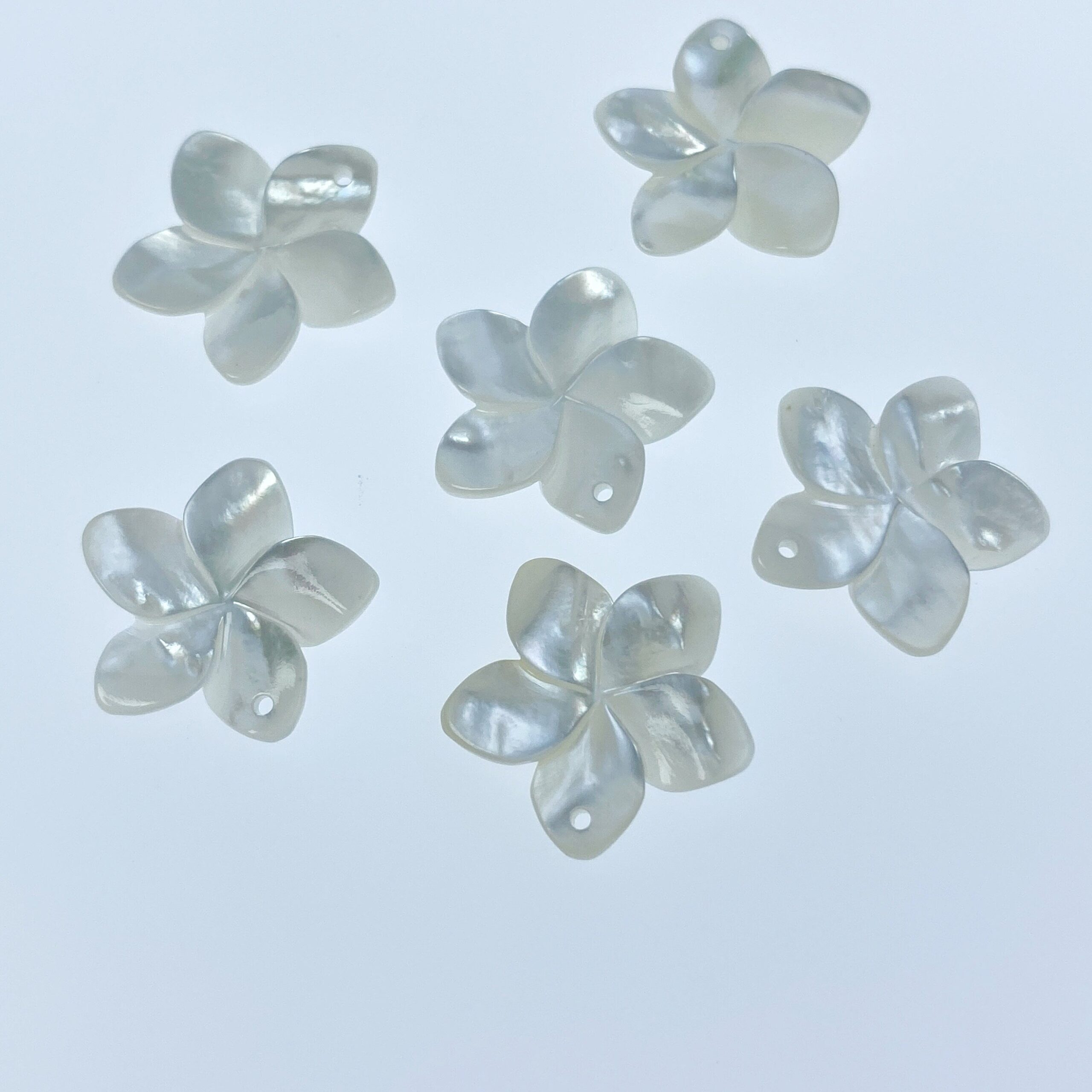 6pc 17mm Hand Carved White Mother of Pearl Plumeria Flower Pendants