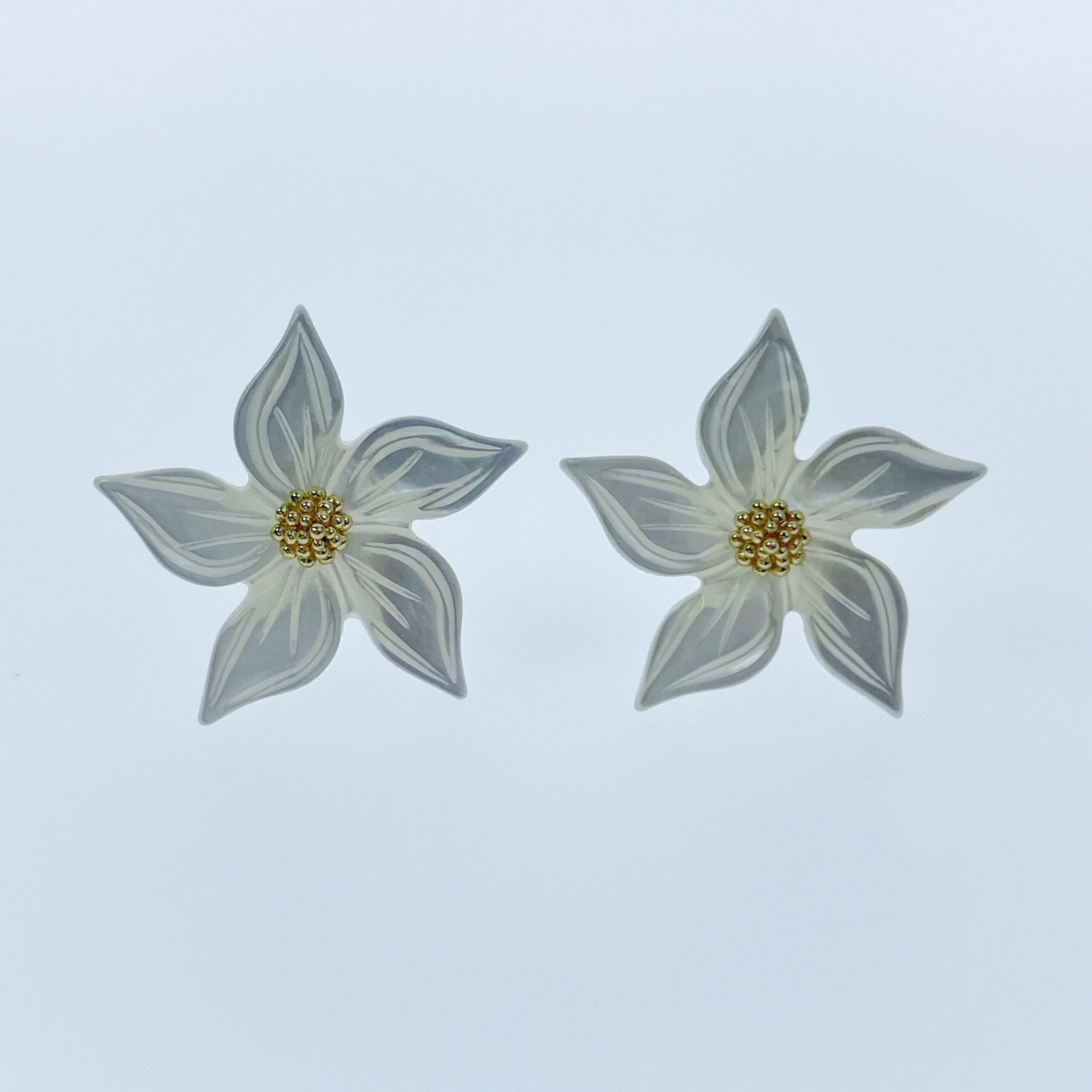 6pc 20mm Hand Carved White Mother of Pearl 5-petal Flower Beads WM-0012