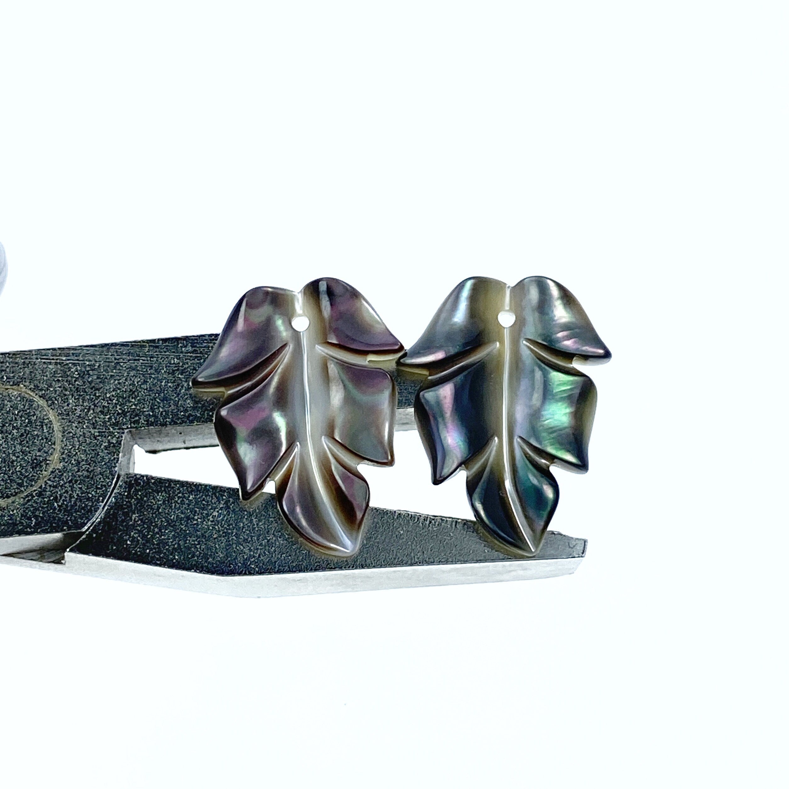 6pc Black Mother Of Pearl Leaf Beads Charms 17mm Hand Carved DIY Jewelry Earring Making Pendants Natural Pearl Paua Shell Beads BM-0007