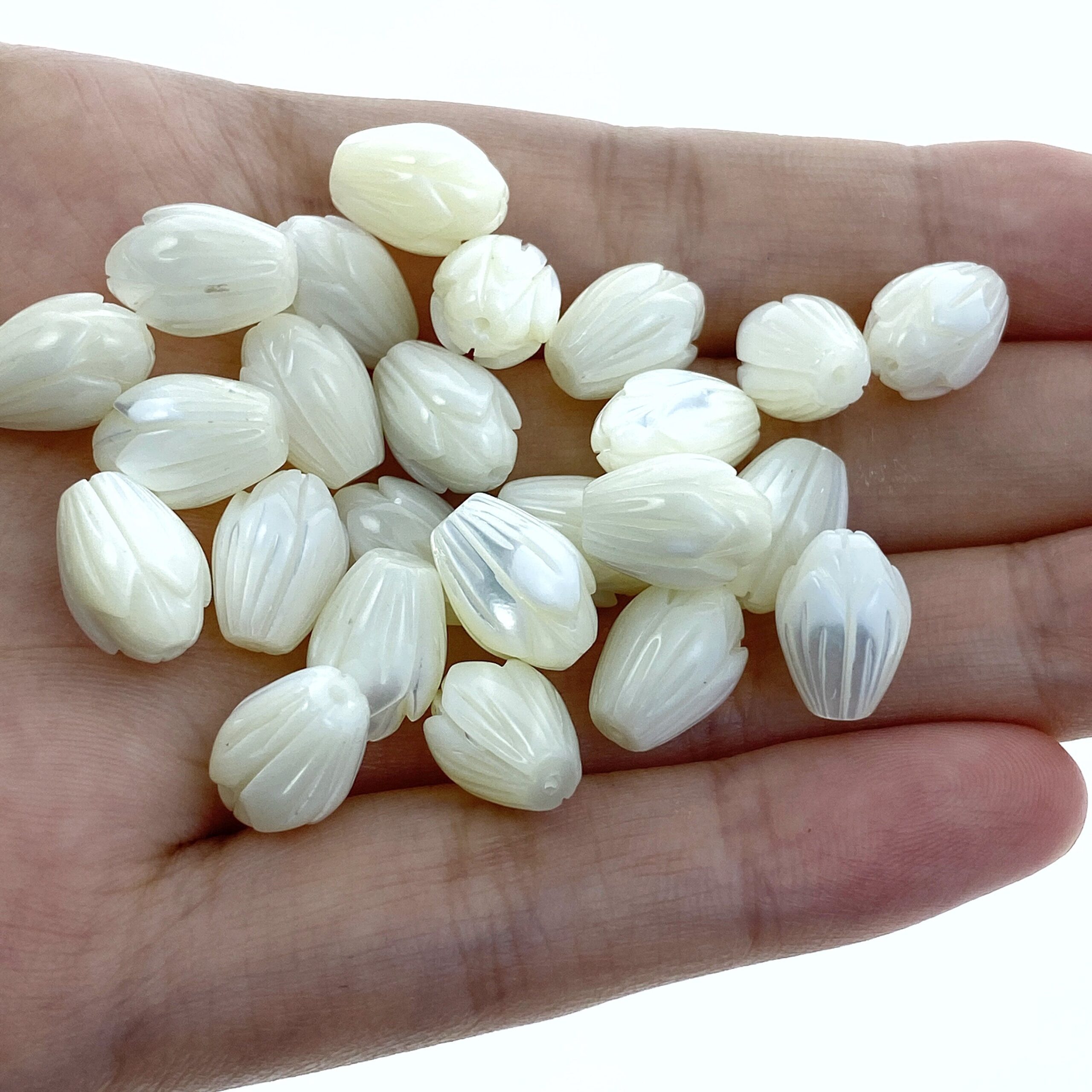 6pc Jasmine Flower Beads White Mother Of Pearl 11mm Hand Carved WM-0035