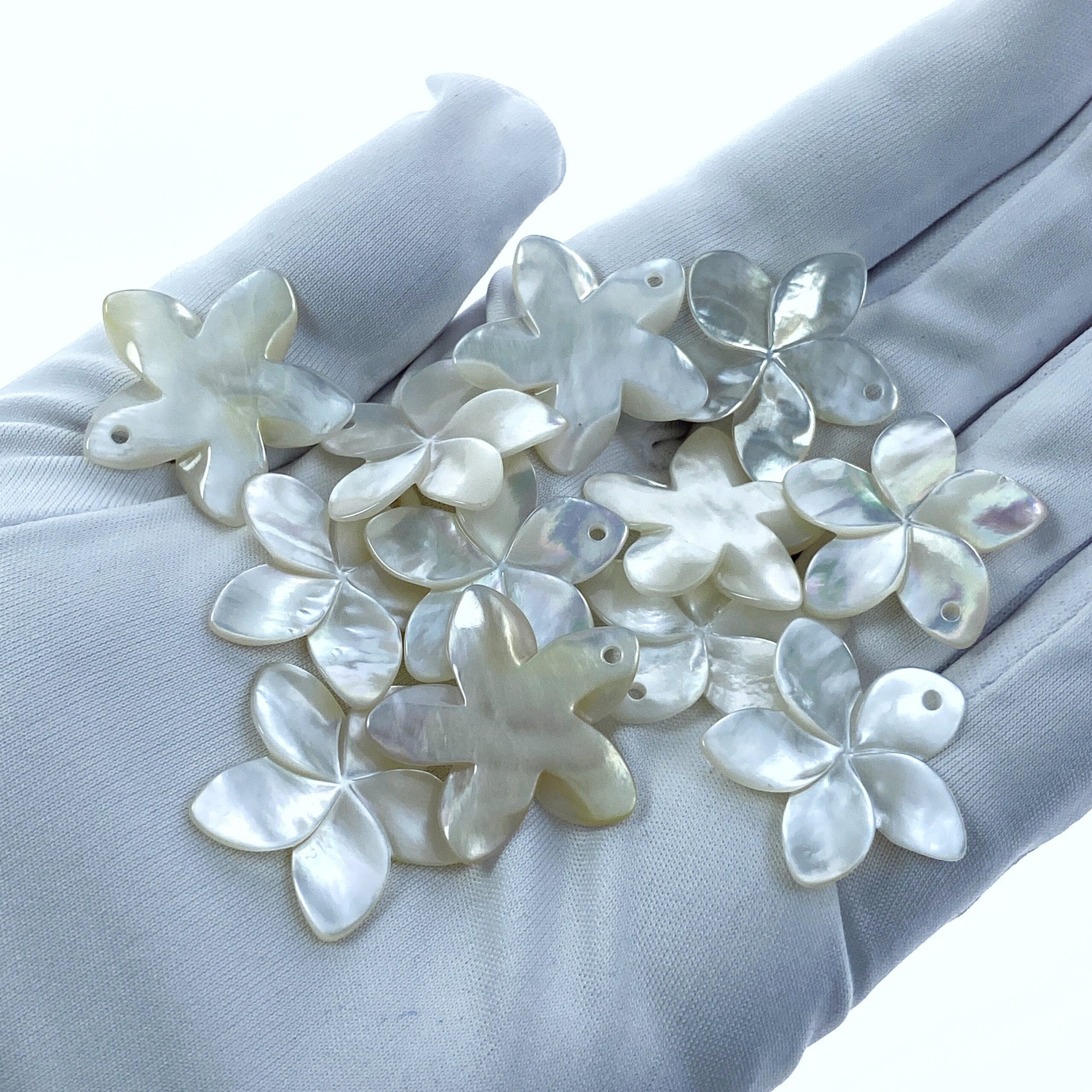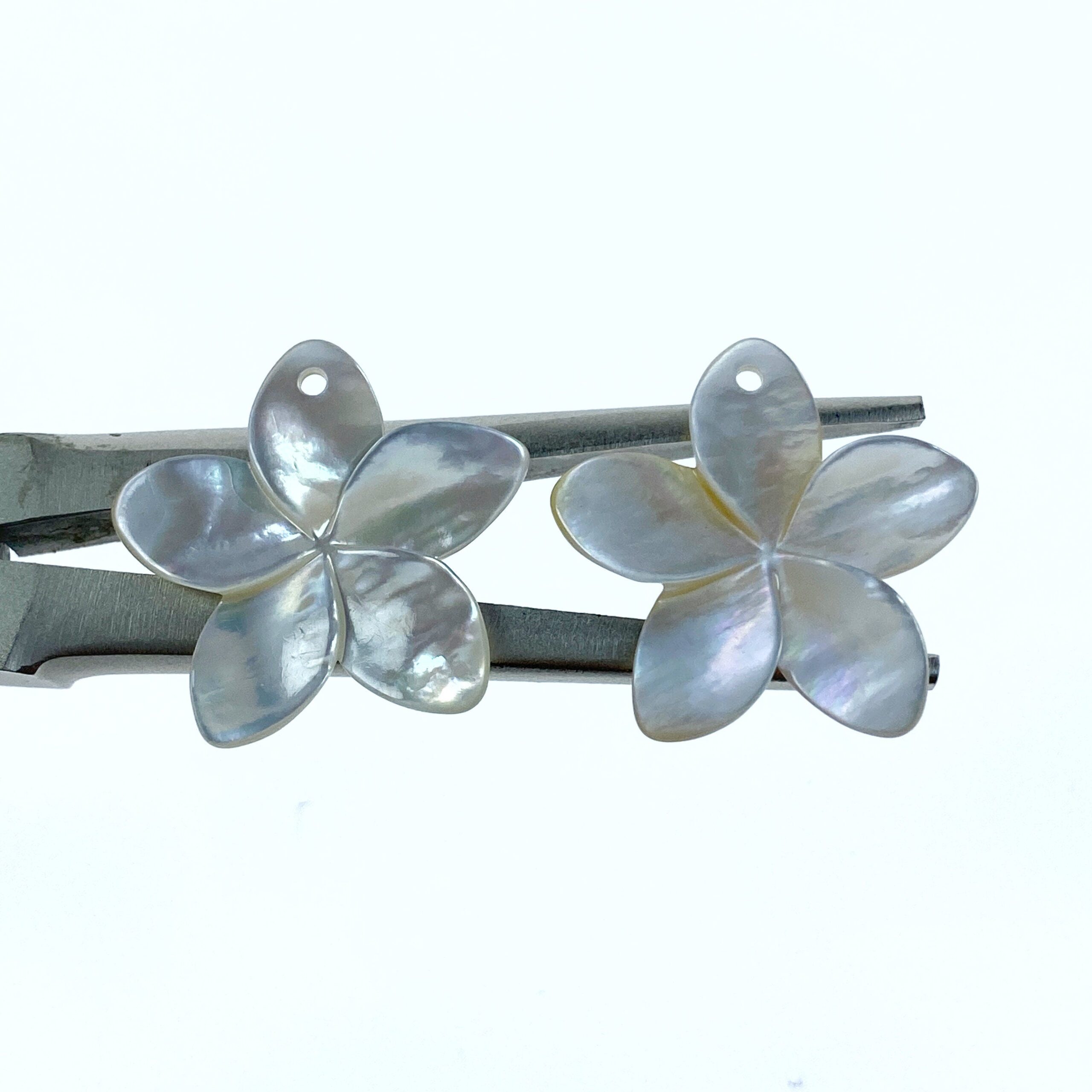 6pc Plumeria Flower Mother Of Pearl Beads 25mm Pendants Bridal Earrings Jewelry Making Tropical Hawaii Minimalist Design Hand Carved WM-0196
