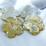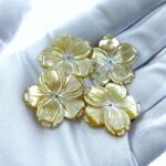 6pc Yellow Flower Beads Mother Of Pearl 25mm Hand Carved YM-0005