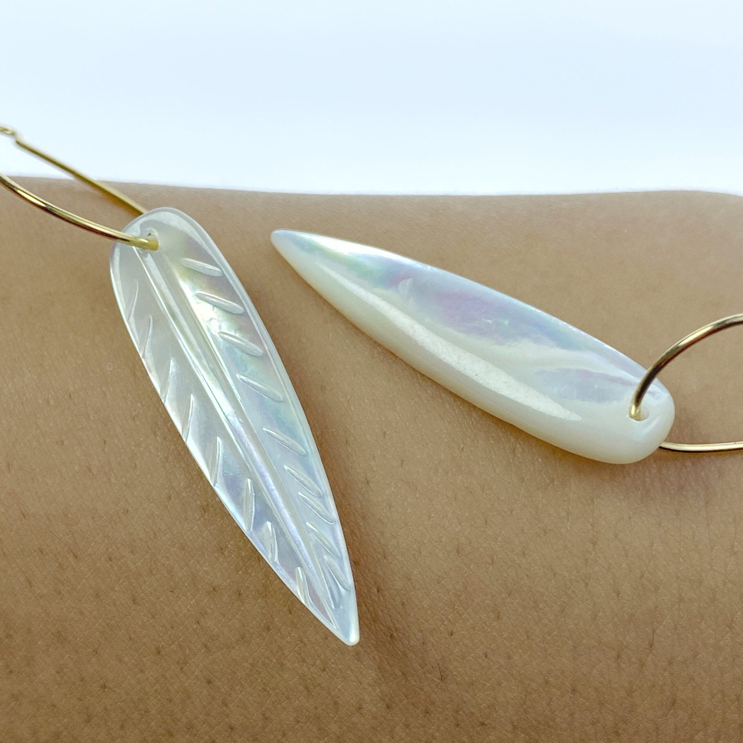 9mm x 35mm White Mother of Pearl Hand Carved Leaf Pendants WM-0215