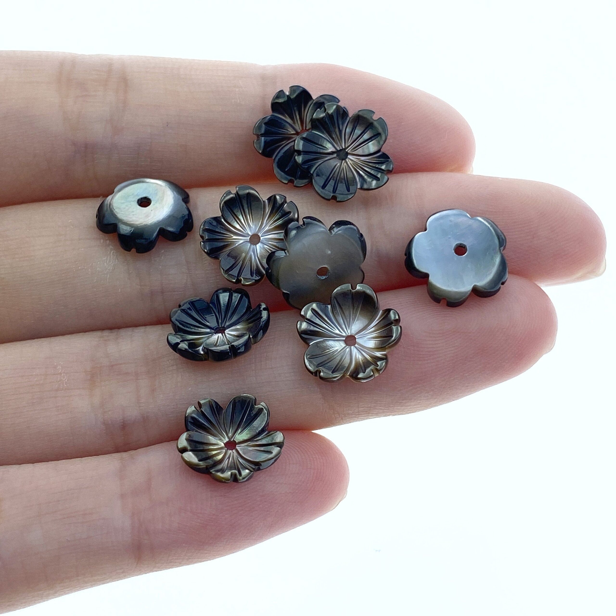10pc Flower Beads Black Mother Of Pearl Beads Charms 10mm Hand Carved BM-0035