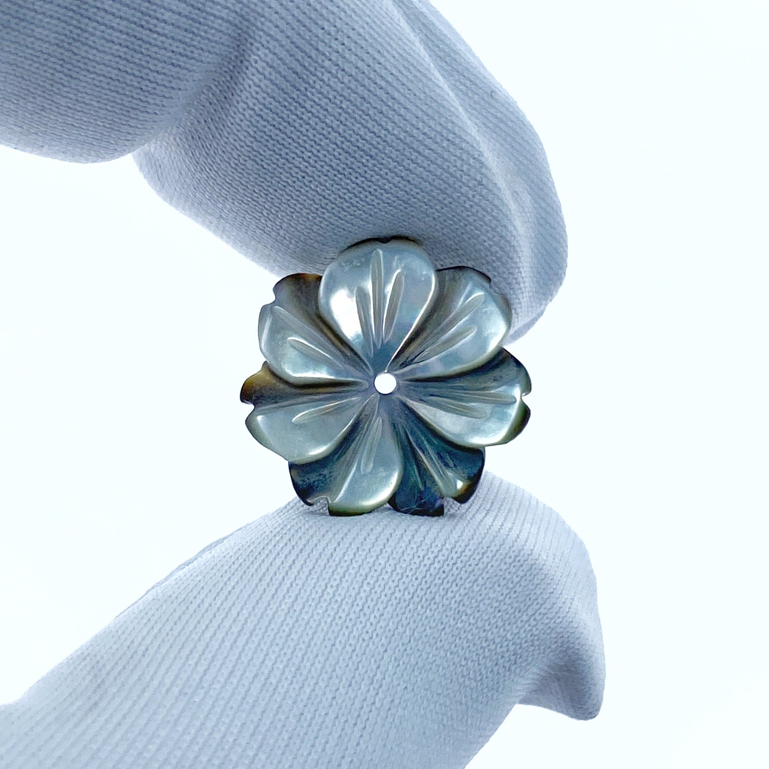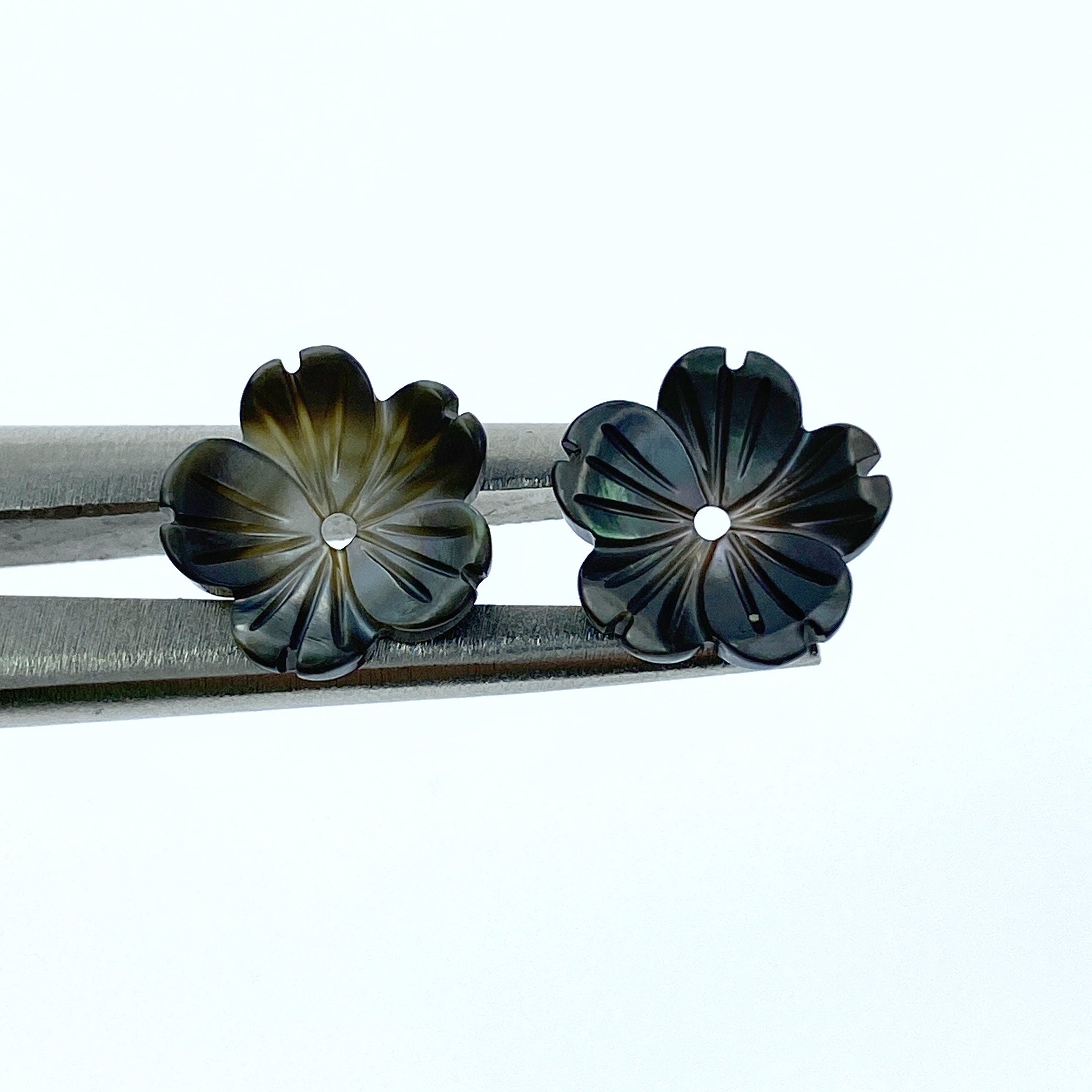 10pc Flower Beads Black Mother Of Pearl Flower 15mm Hand Carved BM-0077